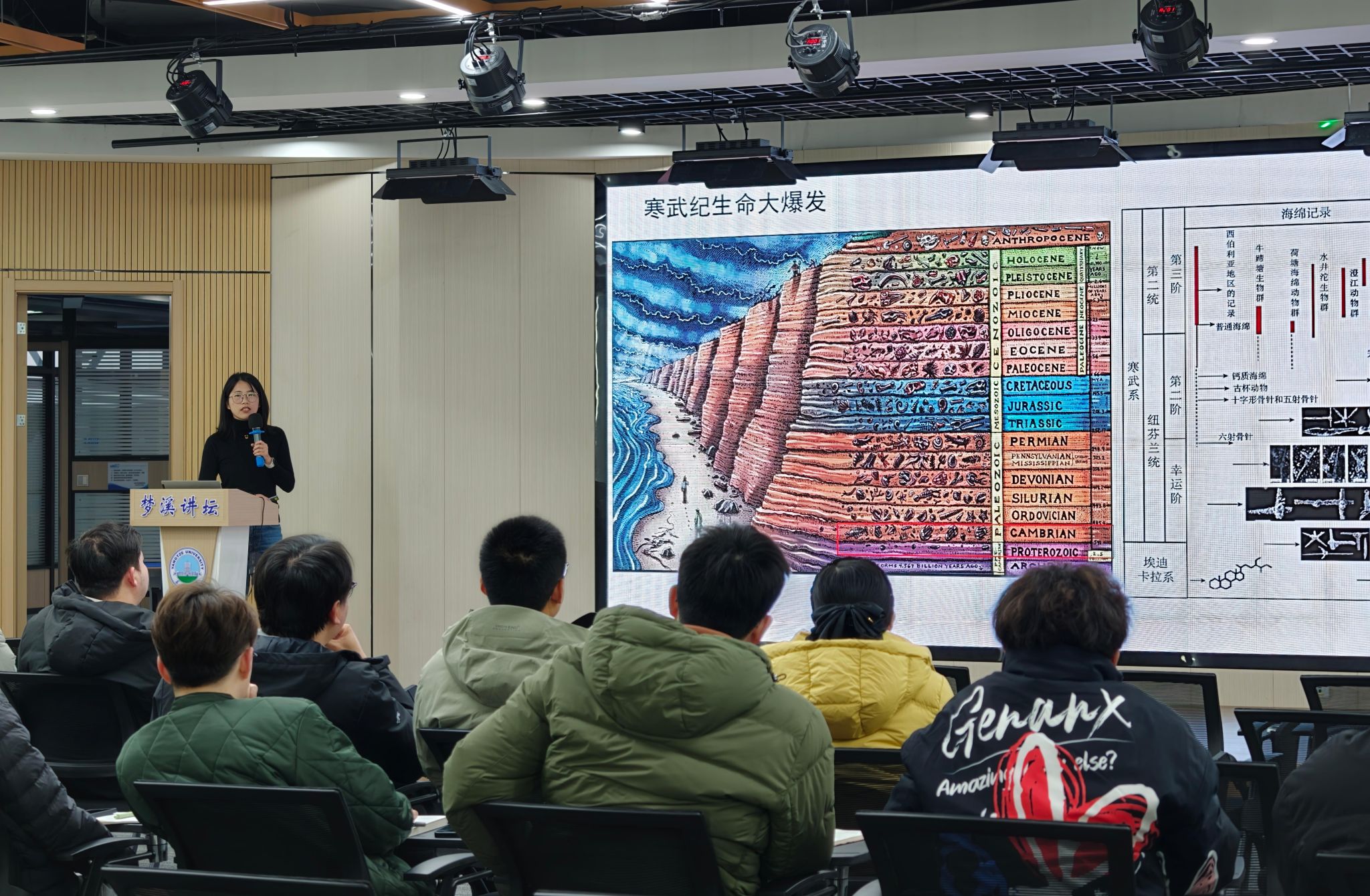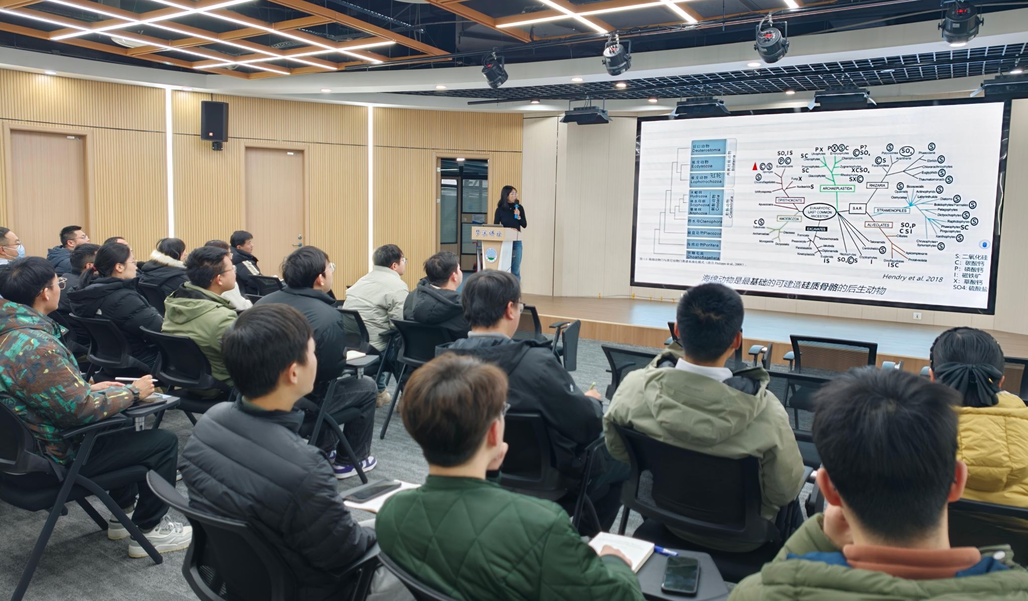 报告主要探讨硅质海绵动物在华南地区的起源和早期演化,及其对海洋环境的影响。叶炎博士指出,硅质海绵是最早的具有硅质骨骼的后生动物,其出现对早期海洋环境与生态系统产生了深远影响。通过对华南地区多个剖面的系统研究,叶炎博士认为硅质海绵动物可能最早于埃迪卡拉纪末期出现于斜坡-下大陆架地区,寒武纪早期扩张到上大陆架和深水盆地。