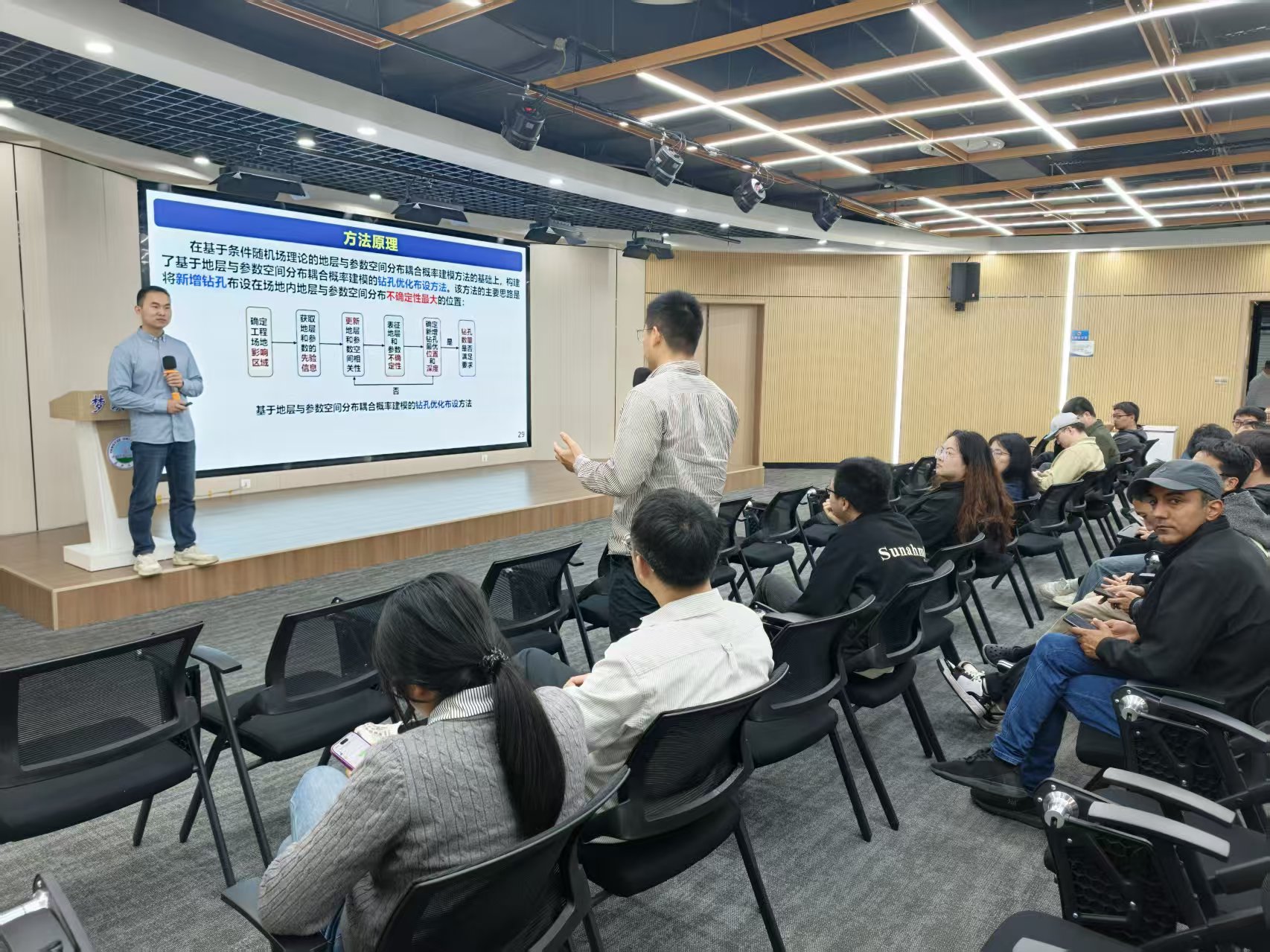 赵超老师作了题为《基于地层结构与地质参数空间分布耦合概率建模的钻孔优化布设方法》的报告。他指出,当前工程地质勘察钻探中,钻孔布设方案的优化研究尚未同时考虑地层结构与地质参数的不确定性。针对这一不足,他首先将随机场理论引入地层不确定性表征,提出了基于随机场理论的地层空间分布概率建模方法;进而耦合地层与参数的空间随机分布特性,构建了基于条件随机场理论的地层与参数空间分布耦合概率建模方法;最后,提出了一种基于上述耦合概率建模的钻孔优化布设方法。结合多个工程实例,赵老师定量分析了该方法在钻孔布设方案中的优化效果,验证了其有效性。与传统钻孔布设方法相比,在同等勘察成本下,该新方法显著提高了地质建模的准确率以及场地岩土工程性能评价的准确率。